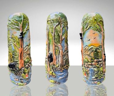 My name is Jean Kranzle and I am a ceramic artist. My work is all wheel thrown, sculpted, carved, and painted in a whimsical, nature - inspired process. I live near the Great Smoky Mountains National Park. The unparalleled splendor of the flora and fauna in this part of Appalachia speaks to me every day---and I listen